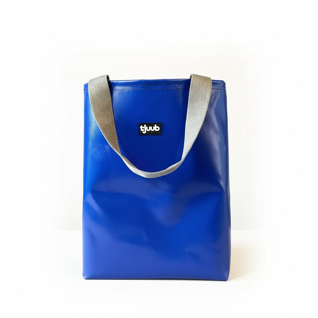 Mach die blaue Shopper-Tasche von tjuub zu deinem treuen Begleiter und setze ein Zeichen für Nachhaltigkeit und Stil. Entdecke die Möglichkeiten und sei einzigartig – genau wie deine neue Tasche!